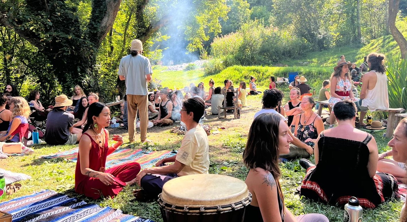 We like to keep a certain flexibility in structure for needs that arise out of the group process, such as discussions, rituals, singing circles, jams and additional creative content.